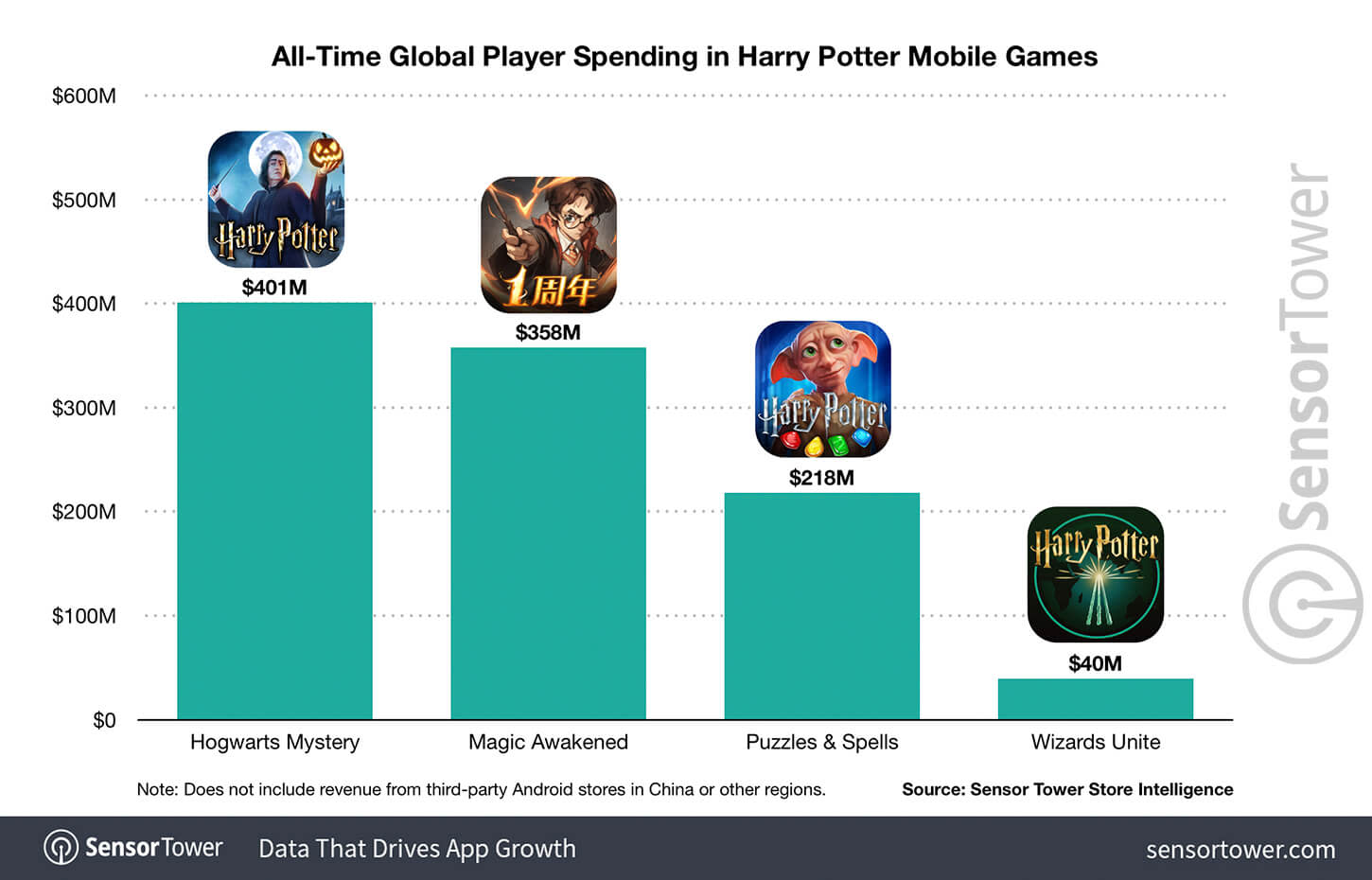 - The other two titles in the top 4 are Zynga’s match-3 puzzler Harry Potter: Puzzles & Spells ($218 million) and Niantic’s already-closed AR title Harry Potter: Wizards Unite ($39.6 million).