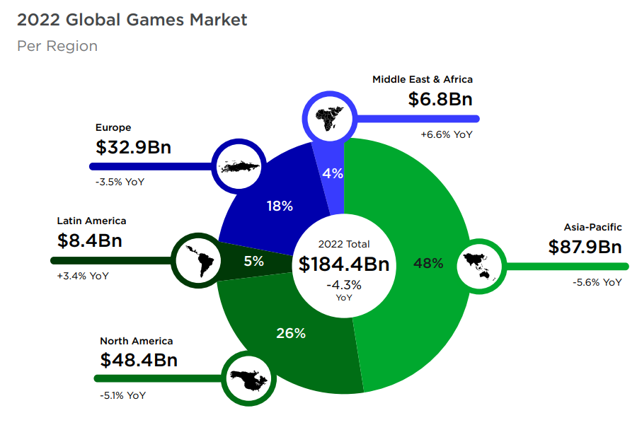 It is also worth noting that Newzoo’s forecasts are usually higher than the actual figures we see every year. For example, the company projected the global games market to generate $180.3 billion in 2021, but it ended up reaching $192.7 billion. So the situation might also be less grim at the end of this year.